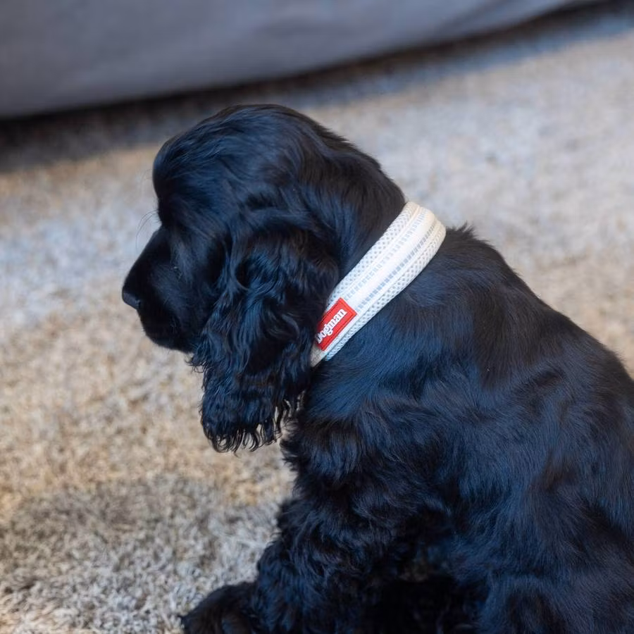 Dogman Air-halsbandet kombinerar robusthet och bekvämlighet för din hunds bästa. Med mjuk vaddering av mesh och en smart säkerhetsmekanism blir promenaderna både trygga och behagliga. Halsbandet är justerbart för en perfekt passform och har reflekterande detaljer som gör att ni syns bättre under sena kvällar. Det integrerade spännet håller halsbandet på plats, även under lek och bus.