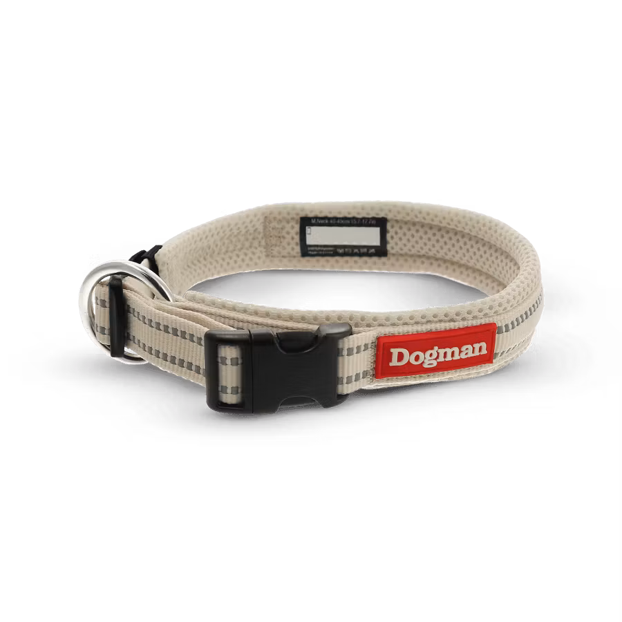 Air Mesh Vadderat Halsband BeigeDogman Air-halsbandet kombinerar robusthet och bekvämlighet för din hunds bästa. Med mjuk vaddering av mesh och en smart säkerhe